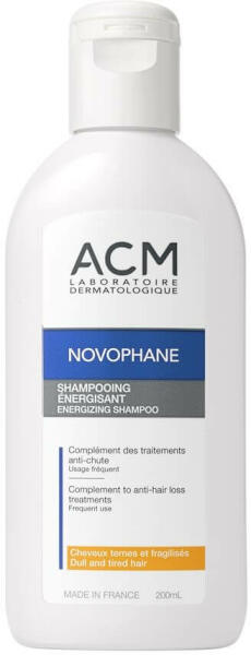 Élénkíti a hajhagymák körüli mikrokeringést javítja a hajhagymák vitamin és nyomelem utánpótlását , segíti a haj növekedését. Az ACM Novophane Energetizáló sampon a benne található 6 vitamin szinergikus hatásának köszönhetően stimulálja a hajhagymákat ezzel elősegítve a hajszálak növekedését. Gyengéd mosóbázisa nem szárítja ki a hajat hanem újra fénylővé és üdévé teszi azt. Használata nem szárítja ki a hajat és a fejbőrt.
