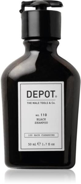Depot No. 110 Black Shampoo, 50 ml, Samponok nőknek, A kiváló DEPOT 100 HAIR CLEANSING sampon hatékonyan tisztítja a fejbőrt és a hajat, és visszaadja a haj természetes szépségét. Tulajdonságok: tisztítja a hajat és a fejbőrt meghosszabbítja a hajszín tartósságát természetes és festett hajra is Használata: Vigyen fel kellő mennyiségű sampont a nedves hajra. Habosítsa fel, majd alaposan öblítse le.