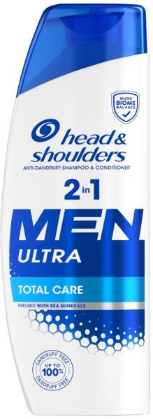 A Head and Shoulders Men Ultra technológia akár 100%-os korpásodás elleni védelmet nyújt, klinikailag bizonyított. Ez a kiegyensúlyozott mikrobiomot tartalmazó formula hatékonyan küzd a korpa ellen és megakadályozza annak újbóli kialakulását, intenzíven tisztává és frissé varázsolva a hajat, miközben védi a fejbőrt a zsírosodástól és a kiszáradástól. A hidratáló anyagokat és tengeri ásványokat tartalmazó Total Care formulánk kivételesen tiszta fejbőrt és könnyen kezelhető, korpamentes hajat biztosít. Kifejezetten férfiak számára fejlesztettük ki, ideális mindennapi használatra. HATÉKONY KORPÁSODÁS VÉDELEM ÉS MEGELŐZÉS. Akár 100%-os korpásodás elleni védelem*, klinikailag bizonyított *látható korpa esetén, rendszeres használat mellett EXTRA TISZTA FEJBŐR Total Care hidratáló összetevőket és tengeri ásványokat tartalmazó formulánk kivételesen tiszta fejbőrt és könnyen kezelhető hajat biztosít MIKROBIÓM EGYENSÚLYÚ KÉPZELET Célozza meg a korpásodás kiváltó okát, és fenntartja a fejbőr