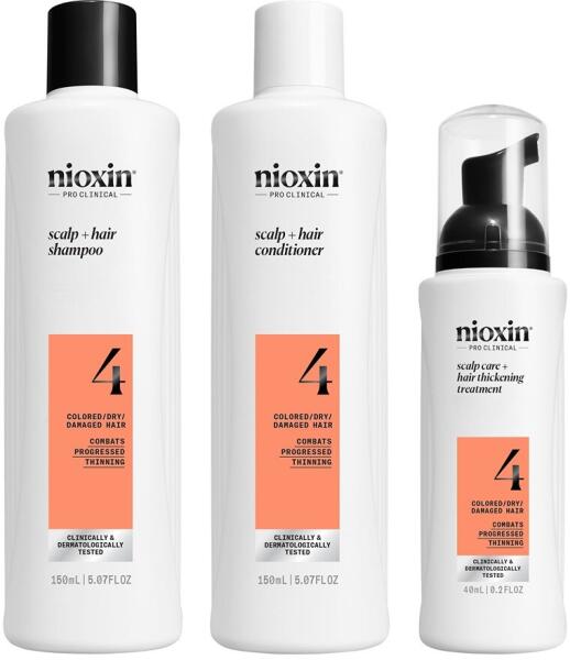 Nioxin System 4 törésgátló professzionális készlet festett vagy sérült hajra, haladó hajra: sampon, 150 ml + balzsam, 150 ml + kezelés, 40 ml