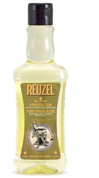 Reuzel 3-in-1 Tea Tree Shampoo egy sampon, kondicionáló és tusfürdő az egész testre, amely tökéletes a tisztításhoz tetőtől talpig. Nyugtatja a bőrt, hidratálja, és ideális a fejbőr teljes körű ápolására.